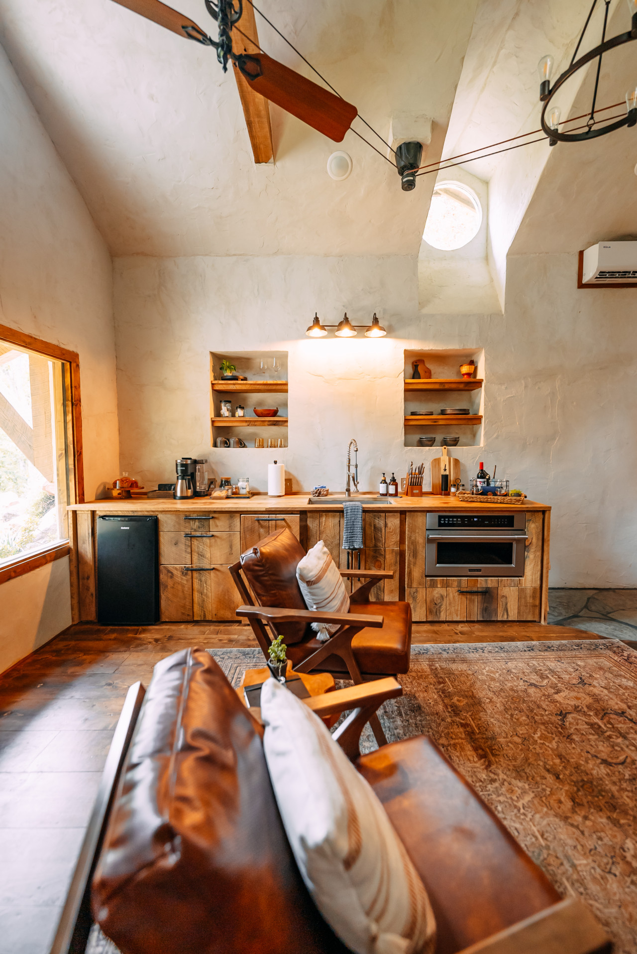 November 2025 5.00We loved our stay at the Shiloh! It almost felt like a hobbit house. The craftsmanship that went into this house is amazing. The huge round window in the bedroom, the beautiful woodwork on the doors, all the stonework, the spa, the outdoor shower, the anccent wall, heated bathroom floors, and especially the hidden room are all so very special. We highly recommend a stay here.