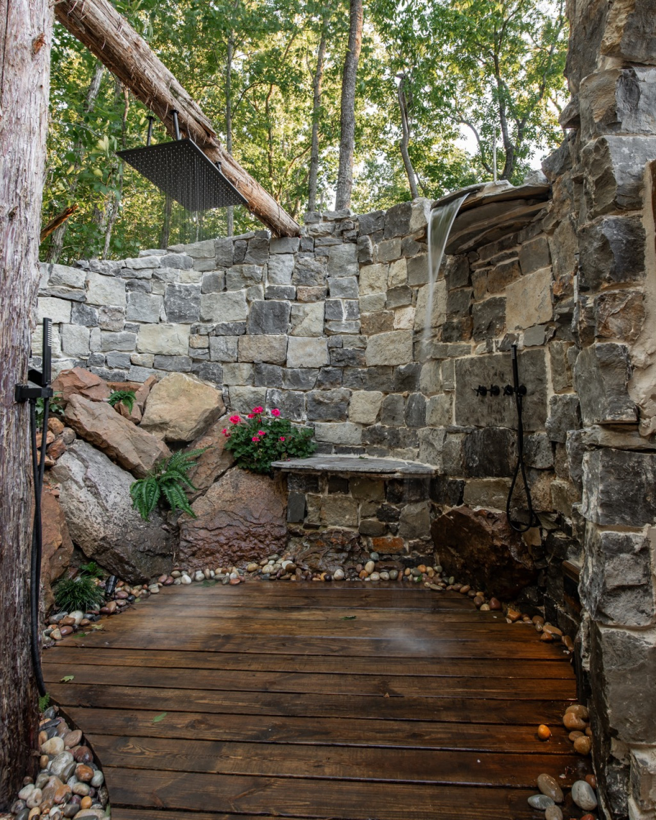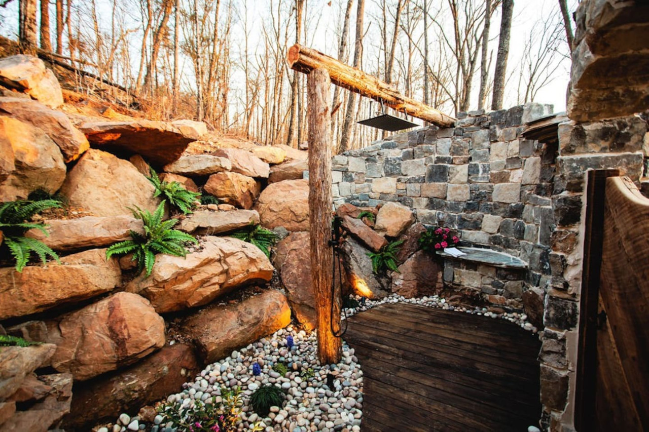 Located in Ringgold, Georgia, The Shiloh sits in 16 acres of private property. It is minutes from Georgia's best wineries and some of the most desirable hiking, whitewater, and scenic activities in Chattanooga and the Tennessee Valley. Escape to our mountaintop retreat for solitude and tranquility. All Military, Police, and Firefighters will receive a 15% discount on all week day stays. Thank you for your sacrifice and service! Though plenty of activities are nearby for adventure, The Shiloh provides sanctuary for the weary soul. A relaxing waterfall can be heard upon arrival connecting the hot tub to the pool. You'll sooth away your worries as you breathe in the sweet mountain air. Take in the views and sounds of the rustling trees while experiencing our spacious outdoor shower complete with both a rainfall shower and and waterfall. Top off the night with a nice glass of wine, or roast smores on the stone fire pit. The Shiloh not only provides the breathtaking views and the melodies of nature, but also unwind to the sound of waterfalls inside and out. Bundle up in the warmth of the cozy indoors with a movie in our hidden movie theatre or take it all in with a dip in the hot tub or pool. The bathroom is equipped with cozy heated floors that are enjoyable summer or winter. There is an outdoor Blackstone for grilling and the kitchenette is equipped with a convection microwave for baking, mini fridge, coffee pot with all the fixin's, and muffins for breakfast. Our sweet escape makes kicking back in nature easy. The Shiloh is the perfect place for a romantic getaway for two. However, it can accommodate up to four guests comfortably with a twin size bunk bed located within the hidden room. It is our hope that this provides a much needed escape from the world and that you will enjoy being off the grid. However, if you find that plugging in is a necessity during your stay, there is wifi available. We live on site and can be as present or not present as you'd like. We are always "on call" and available if needed.